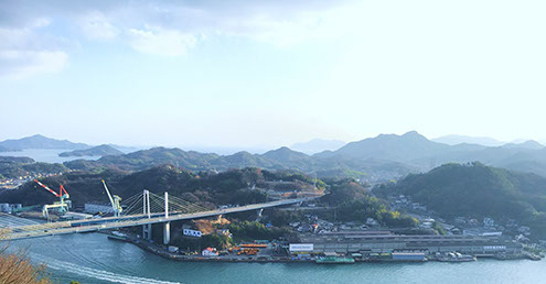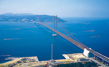 明石市と淡路島を結ぶ世界最長の中央支間長(1991m)の吊橋です。