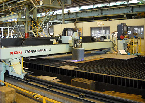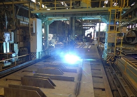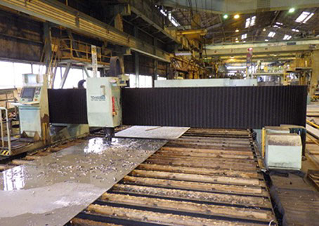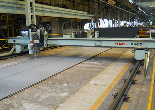 数値制御により鋼板にボルト穴などの穴あけ加工をする設備です。