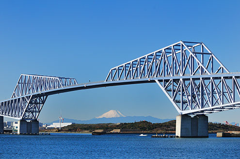 恐竜が向かい合っているように見えることから「恐竜橋」とも呼ばれ、中央防波堤外側埋立地と江東区若洲を結ぶ橋です。