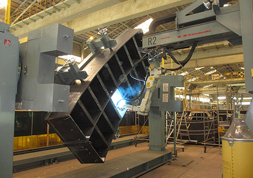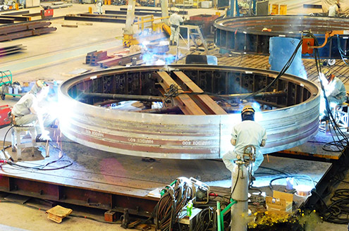 主にシールド掘進機、水門、大型鋼構造物(沈埋函、ケーソン)各産業機械などを製造しています。多数のNC機械、溶接ロボット、工作機械設備などを導入し、自動化・機械化を図っています。また、更なるお客様の満足度向上を目指し品質向上に努めています。