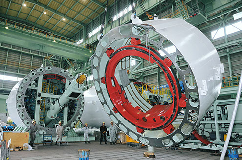 組立工場では、直径10mを超える大型シールドマシンなどの組立試運転ができます。