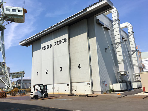 ドックの隣には塗装ブラスト工場があり、大型製品のブラスト塗装ができます。
