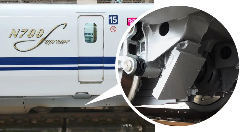 台車部への着雪を防止するヒーターとして、 東海道・山陽新幹線の最新車両に当製品が採用されています。(HiTaCa®フィルムヒーターは筐体内部に配置)