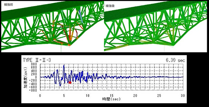 最近の長大橋の耐震補強では、地震時のエネルギーを吸収できるデバイスを組み込むことで、より効率的に地震力を軽減できる損傷制御設計に基づく耐震補強の採用も増加しており、より高度な動的応答解析が必要になっています。