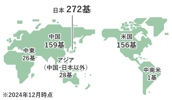 ガスタービン・各種ボイラ(石炭焚きおよび重油焚きなど)・ディーゼルエンジン・ごみ焼却発電施設・エチレン分解炉・石油改質炉・焼結炉など、あらゆる分野に脱硝触媒および脱硝システムを提供しています。1974年に国内向け初号機を納入して以来、米国や中国、韓国、台湾、サウジアラビア、カタールなど、640基以上を納入しています。(2024年12月時点)また、脱硝システムの応用技術である舶用SCRシステムの受注実績は100基以上です。(2021年時点)