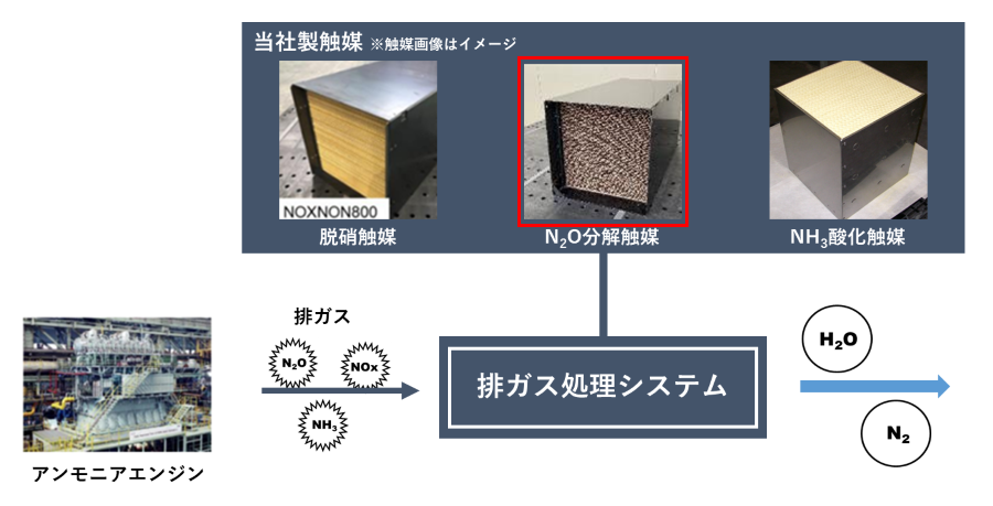 2当社製の他触媒と併用することで、アンモニア燃焼排ガスをまとめて処理するシステムを開発中