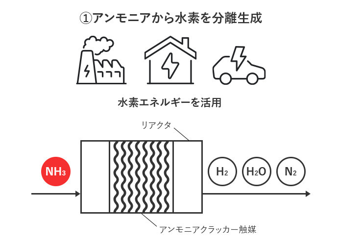 | 燃焼性の悪さ | 水素との混焼 | アンモニアクラッカー触媒 | |