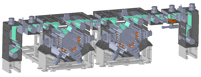 - スパッタと真空蒸着の異なる真空度のプロセスを差圧調整機構を設けることで、連続成膜が可能。