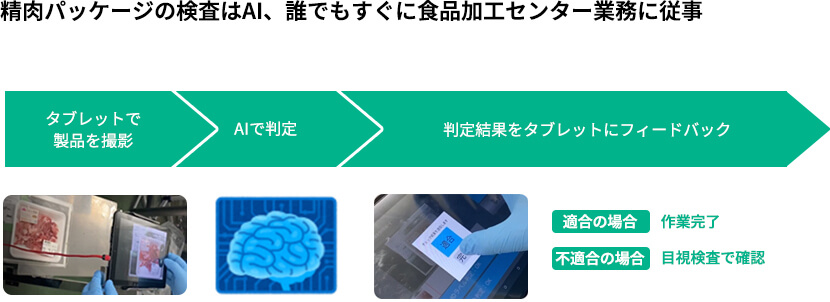 - ・食品加工センター側は、タブレットと管理PC、AI.TEC設置のサーバでリモートAI判定する「リモートラベルチェックサービス」を開発・サービスを開始