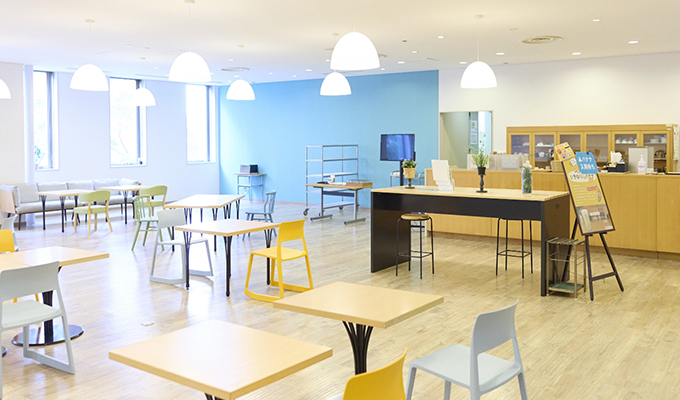 職員の休憩室や気軽な話し合いの場として利用されています。カフェが併設されており、淹れたてのコーヒーやジュースの購入もできます。