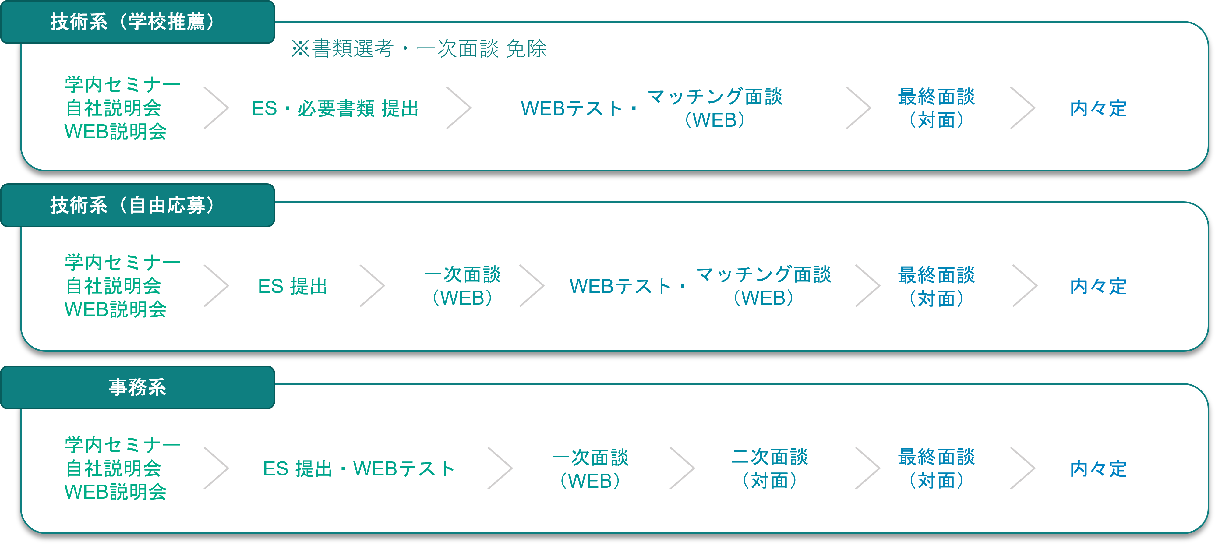 技術系、事務系共に、弊社採用ホームページもしくはマイナビよりプレエントリーください。