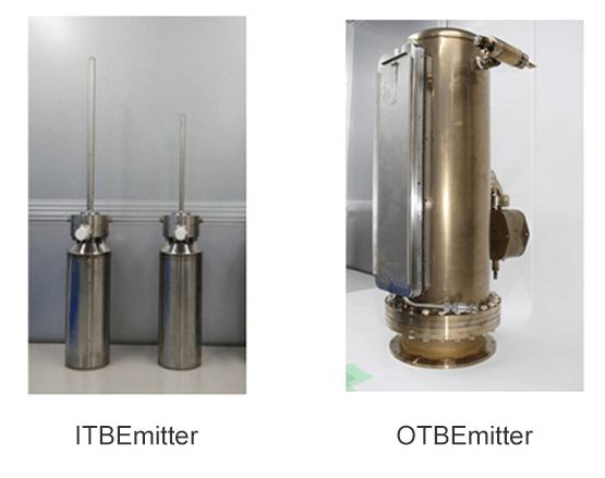 Kanadevia proposes a system that uses an electron beam irradiator (emitter) for sterilization of food and beverage containers, and for sterilization in the fields of regenerative medicine and pharmaceutical manufacturing. Our emitter illuminates only the surface of the object with low energy, so it has nearly no effect on the base metal. According to the shape of the object, two types of emitters are available: ITB and OTB. Additionally, the electron beam emitter has a compact design that is smaller than a high-energy electron beam irradiator. Furthermore, certification as a Senior (First class) Radiation Protection Supervisor is not required. The device is easy to install and is priced affordably.