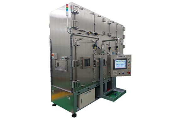 This device uses two OTB emitters to emit an electron beam that sterilizes the outer surface of pharmaceutical packaging containers (tab). Sterilization performance is (SAL) 10-6 or higher, and the device is designed to minimize manual labor. Kanadevia proposes a new overall system including existing vials, connections to syringe filling lines, and filling machines. We have installed an electron beam tab sterilizer in machinery at our Chikko Plant (Taisho Ward, Osaka). The sterilizer is used for test irradiation and sample provision as a means of confirming performance.
