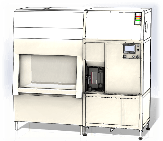 Previously, when materials were brought into isolators and safety cabinets, the outer surface of the materials was cleaned with alcohol and sterilized with hydrogen peroxide gas. However, sterility cannot be guaranteed by wiping with alcohol. Furthermore, sterilization using hydrogen peroxide gas takes time and residue is a concern. These issues have been problems in the fields of medicine and regenerative medicine. Kanadevia manufactures and sells electron beam sterilization pass boxes that use low-energy electron beam emitters to achieve exterior sterilization of various materials in about five minutes.