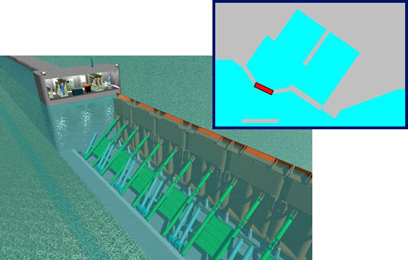 For the first time in Japan, a Seabed-type Movable Flap-Gate Type was adopted for this construction.
