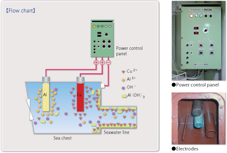 DAIKI COPIONATOR generates copper ion and aluminum ion by electrolysis, and form fouling prevention film on the inner surface of seawater systems.
