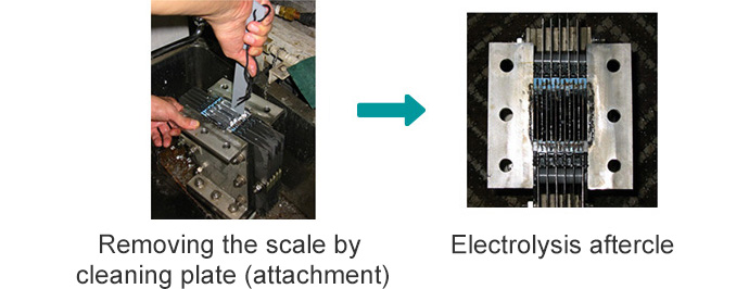 Our electrolysis cell does not accumulate scale (Ca and Mg) by patented technology, so that all you need for maintenance is to remove the scale only once a year without usage of chemicals (such as hydrochloric acid).