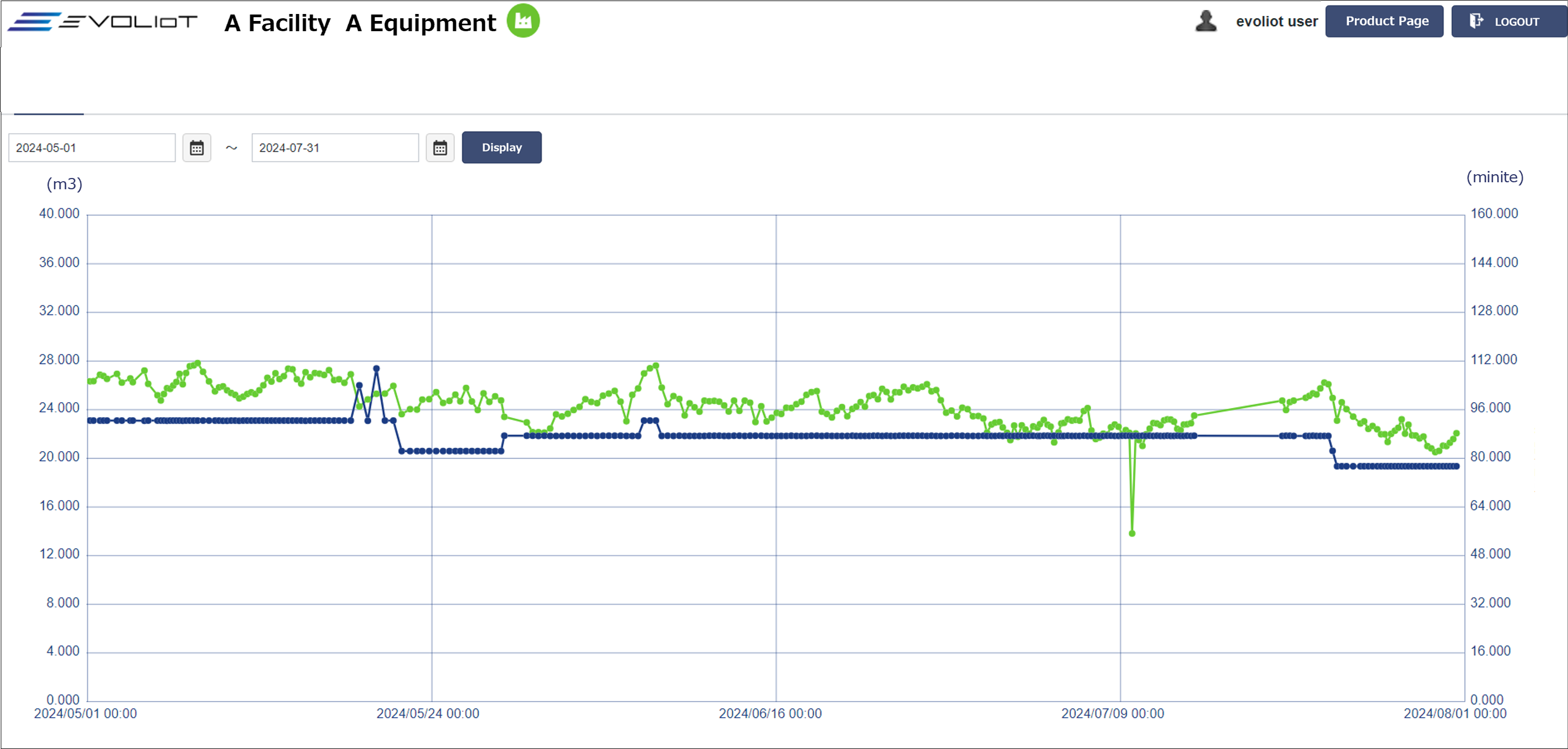 By installing EVOLIoT, the clogging tendencies of filter cloths are visualized based on the analysis results of flow rate data. When the filtration capacity decreases, it is displayed as a numerical value. Previously, operations relied solely on the experience and knowledge of the operators. By presenting these data to the customers, they can understand and agree on the appropriate timing for replacing the filter cloth. This contributes to optimizing the operation.
