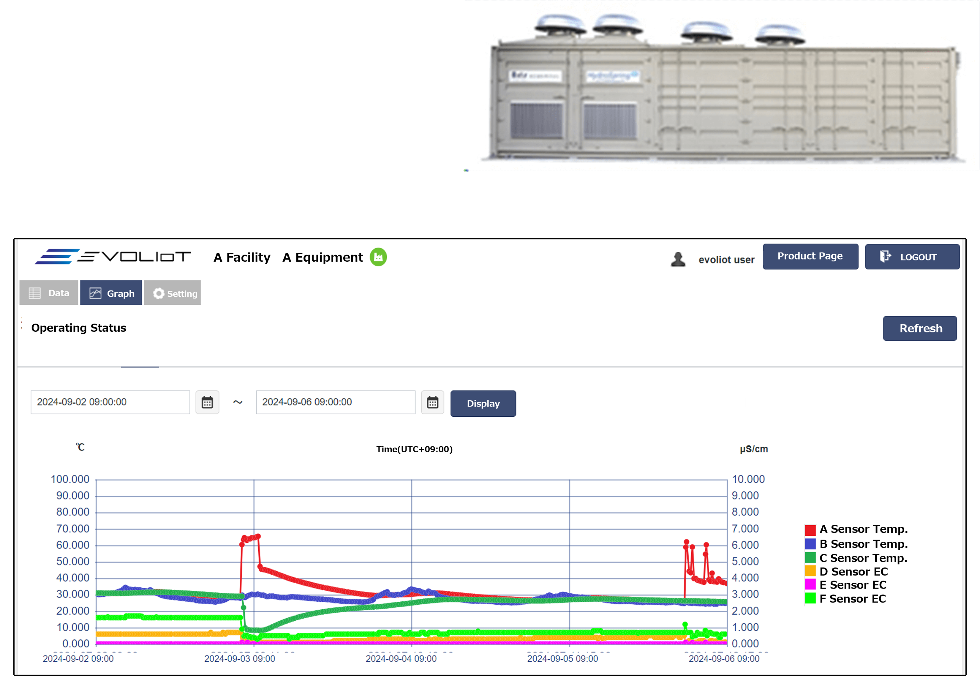 Hydrogen Generation System is composed of many modules with various roles. When a problem occurs, it is difficult to determine the cause without comprehensively investigating the data from each module. Therefore, when a problem occurs, it was necessary to visit the site and check the data, which took considerable time to investigate the cause. By installing EVOLIoT, data can be checked on a visualization screen without having to visit the site, allowing for efficient troubleshooting and contributing to early recovery.