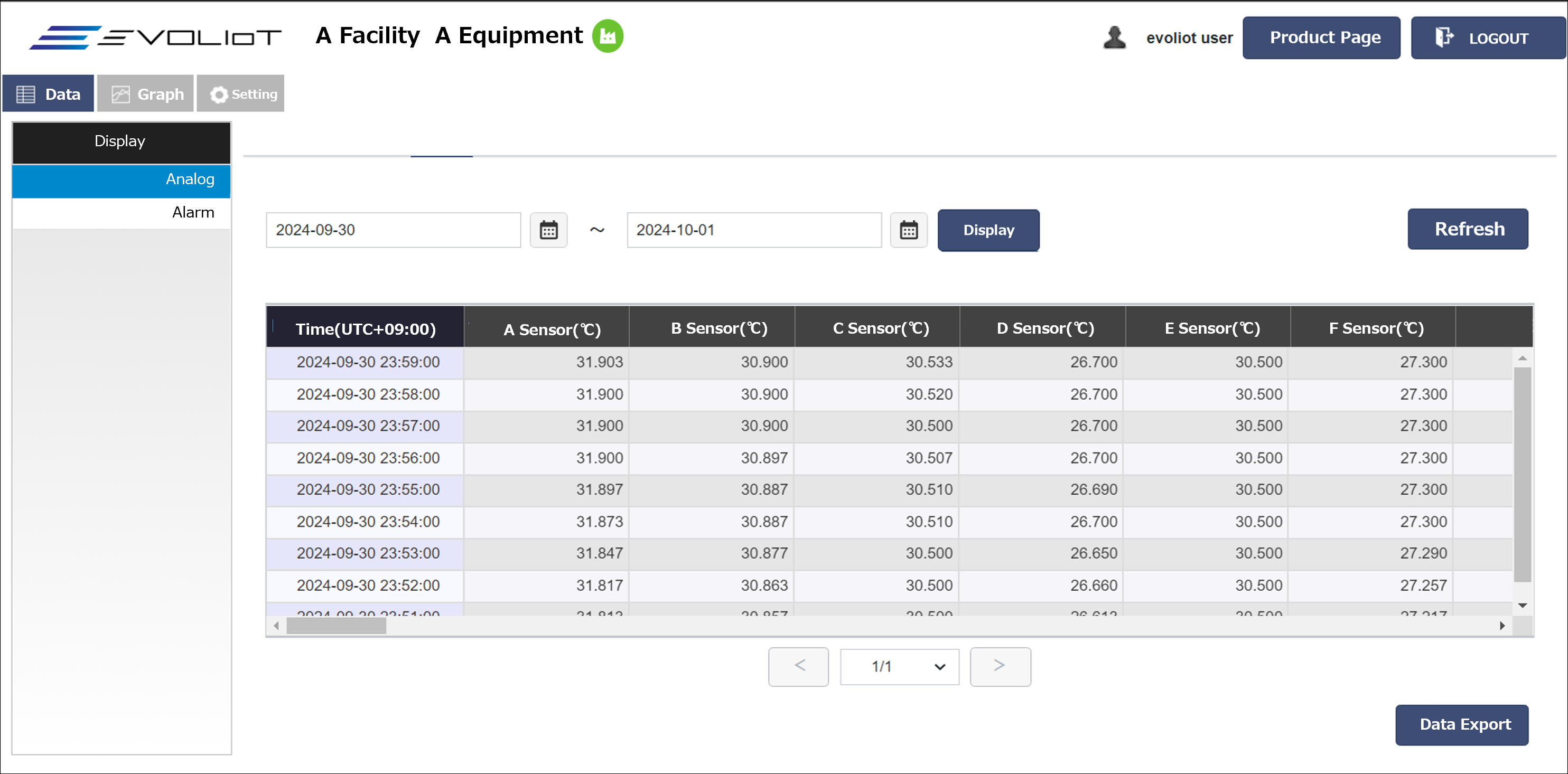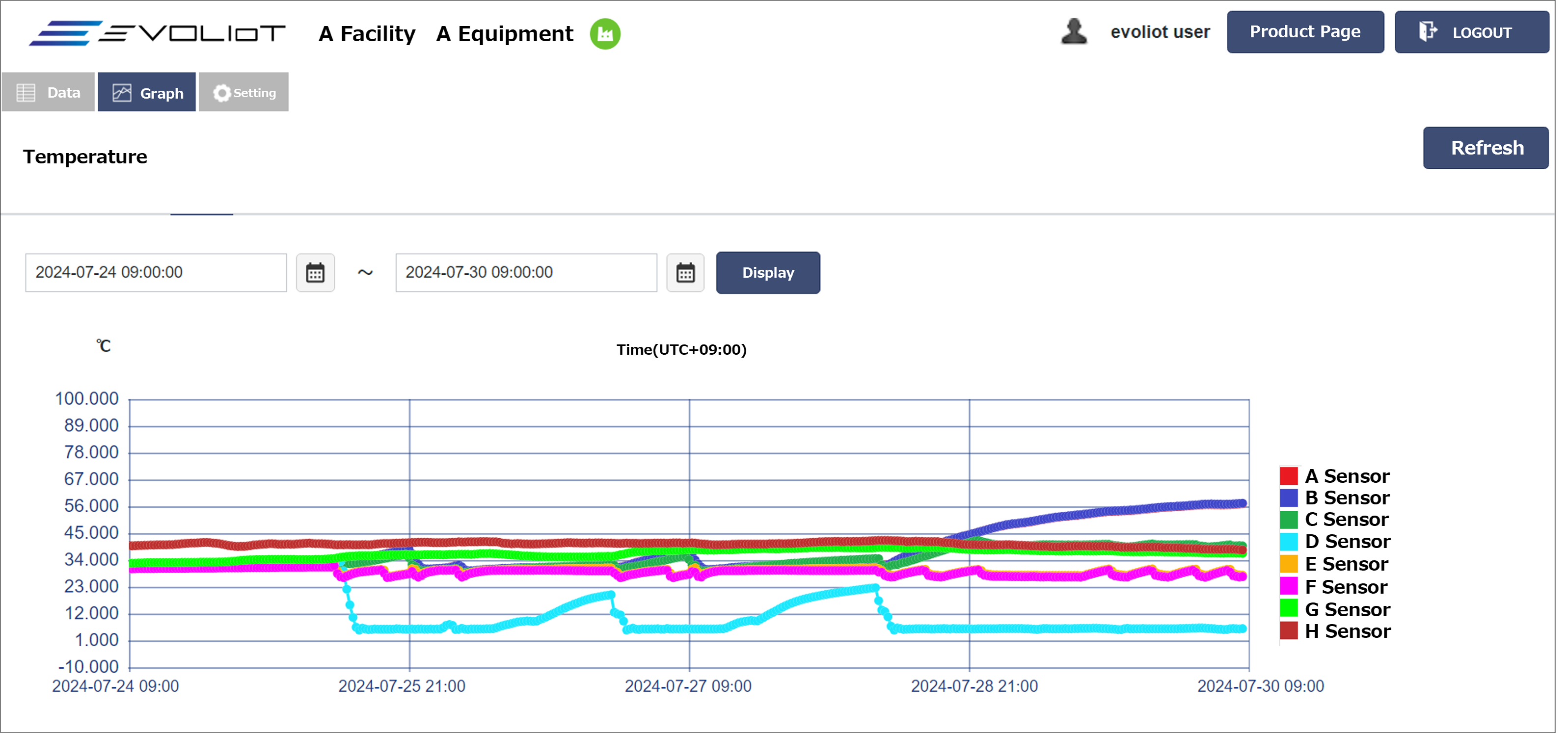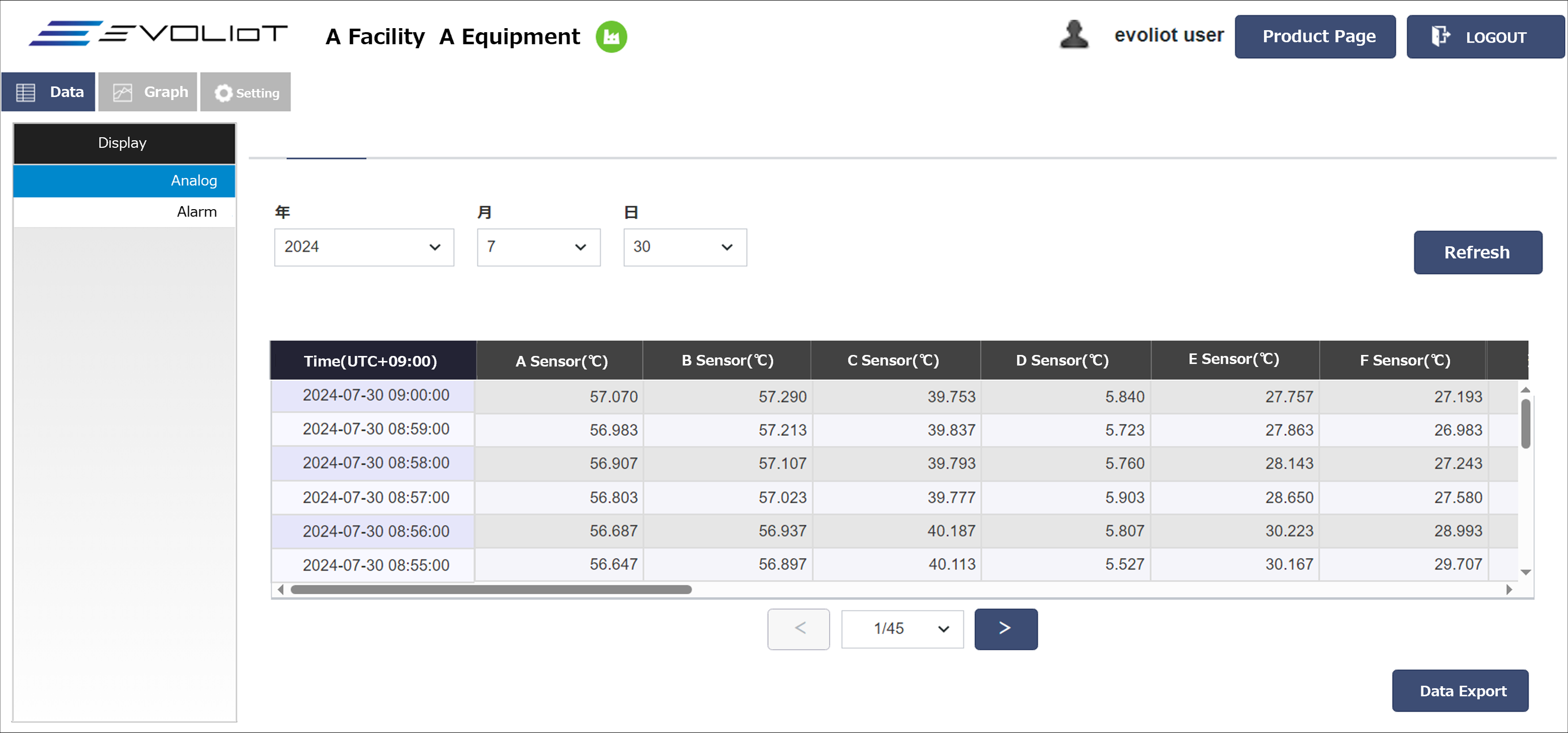 Displaying period can be freely changed and the data trends can be viewed at a glance.