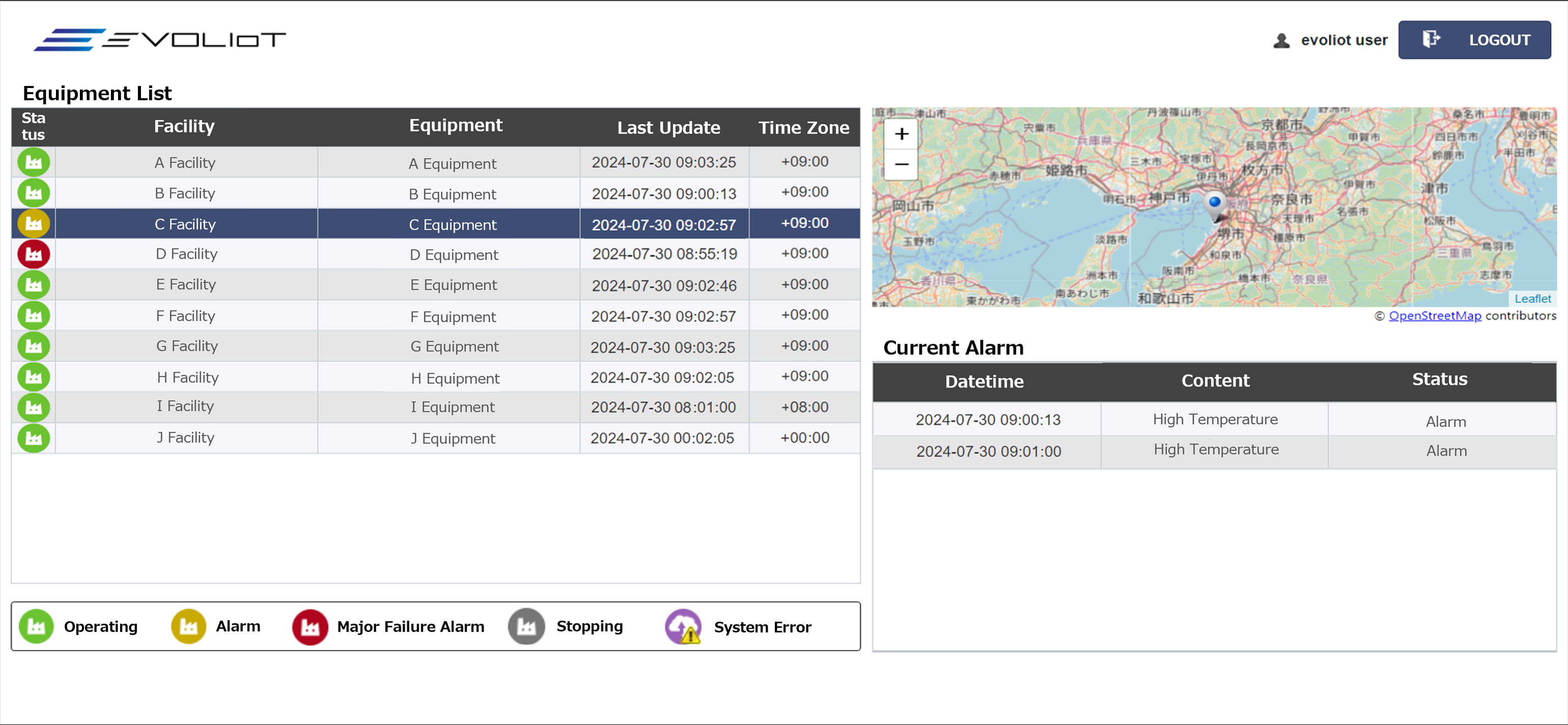 Understanding the operating status and early detection of problems became possible by installing EVOLIoT. In addition, it is now possible to select and bring the necessary parts for recovery before visiting the site. As a result, the number of cases where recovery can be achieved in a single response has increased, and contributing to the early resolution of problems.