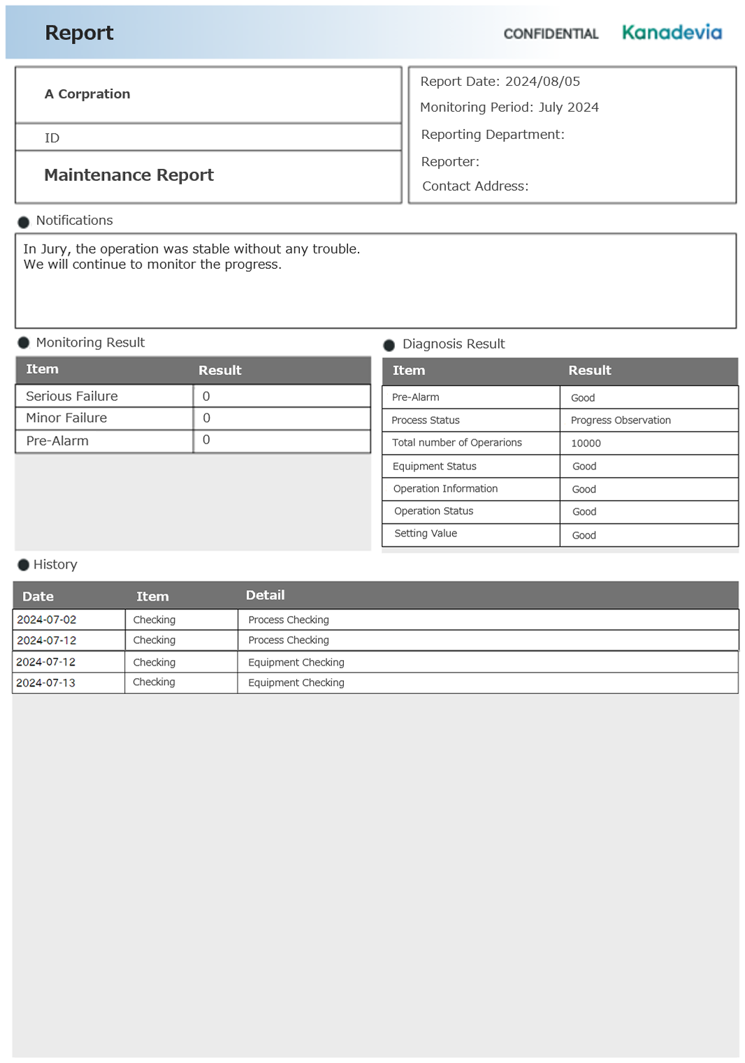By checking detailed equipment health data, appropriate maintenance can be provided, improving the product operating rate.