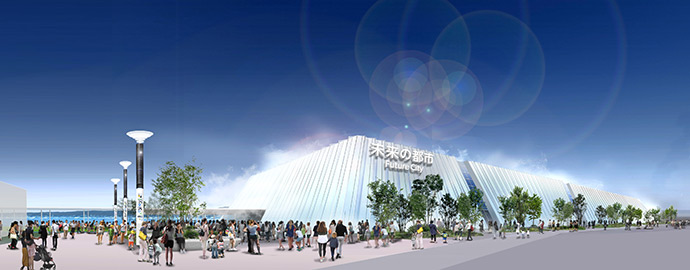 Future City is a collaborative exhibition project organized by the Japan Association for the 2025 World Exposition and 12 sponsors and organizations under the theme, To the City of Happiness. Its goal is to achieve both economic development and solutions to social issues, an embodiment of the envisioned Society 5.0 city of the future, by transcending the boundaries between organizations, companies and industries and leveraging their knowledge and technological capabilities.