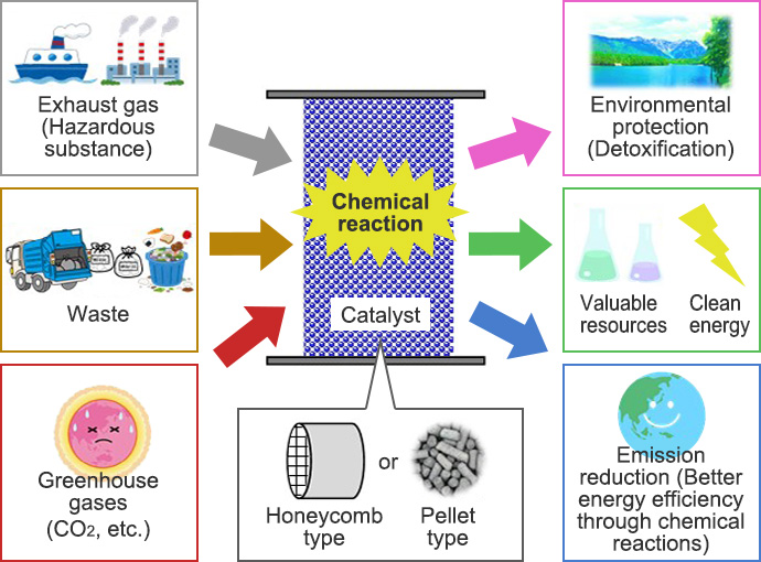 We are working on the process design of chemical reactions and the advancement of catalyst technologies that incorporate computational chemistry. We are contributing to the establishment of SCR (Selective Catalytic Reduction) systems and technological innovations for reducing greenhouse gas emissions such as carbon dioxide (CO2) in response to environmental regulations related to exhaust gases. We will continue to develop technologies, even entering into new fields, with the goal of achieving zero emissions and creating green energy by converting waste into valuable resources.