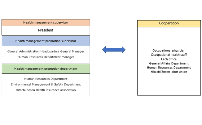With the President in charge, we will promote health management in cooperation with occupational physicians.
