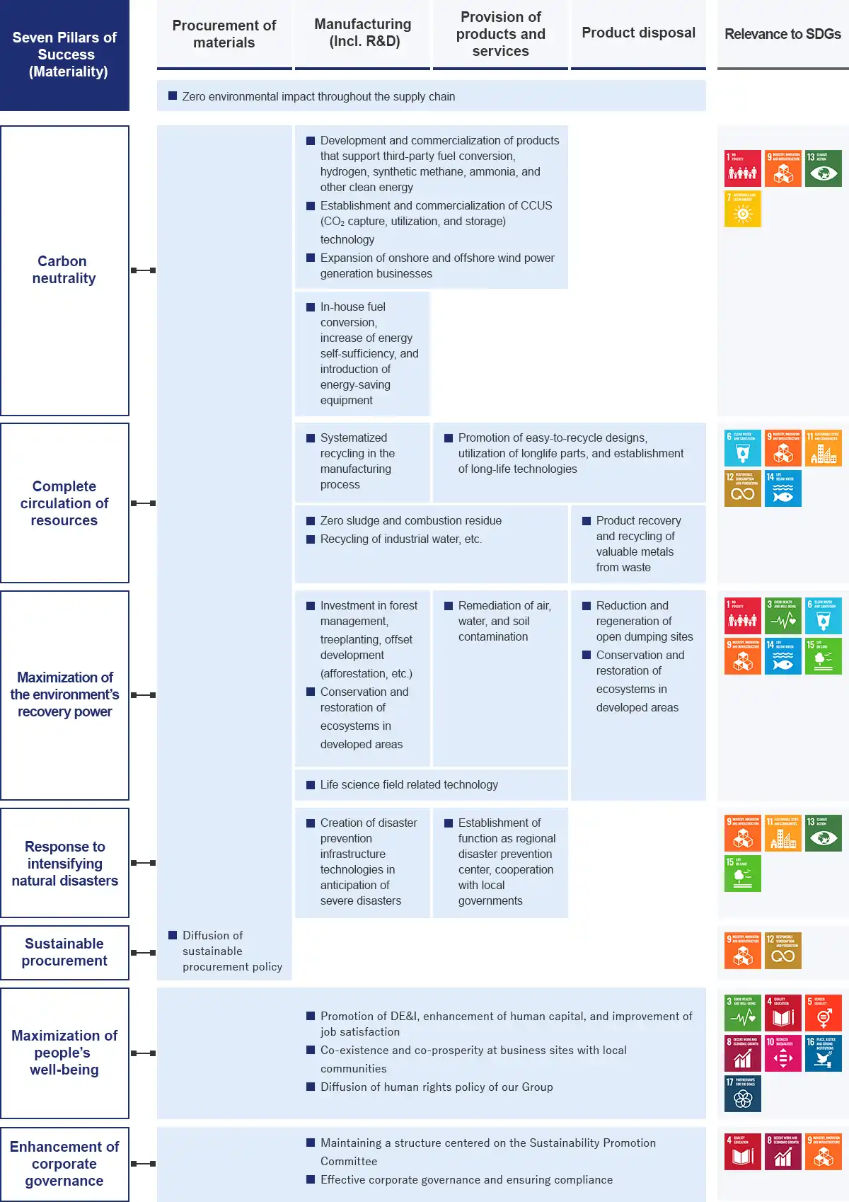 - 2Identification of the "Pillars of Success (Materialities)" essential to the realization of the vision