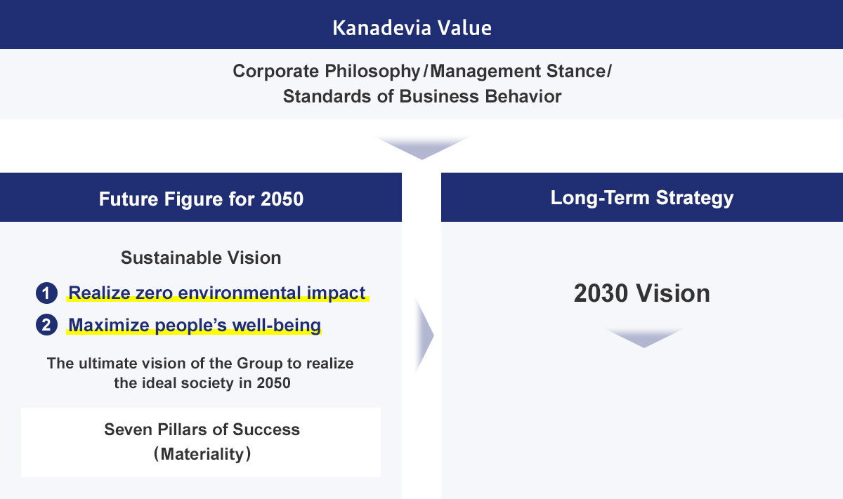 Of the risks and opportunities that could impact the sustainability of the Kanadevia Group’s business model and the execution of our strategies over the medium to long term, in 2020 we identified especially important items as environmental, social, and governance (ESG) issues. Later, amid a global increase in the significance of sustainability, in 2022 we carried out a review, also taking into consideration the changing megatrends in the external environment that could impact the Kanadevia Group’s business as well as our plans to formulate a new Sustainable Vision. Materiality represents the elements essential for realizing our Sustainable Vision—what we call the “Seven Pillars of Success.”