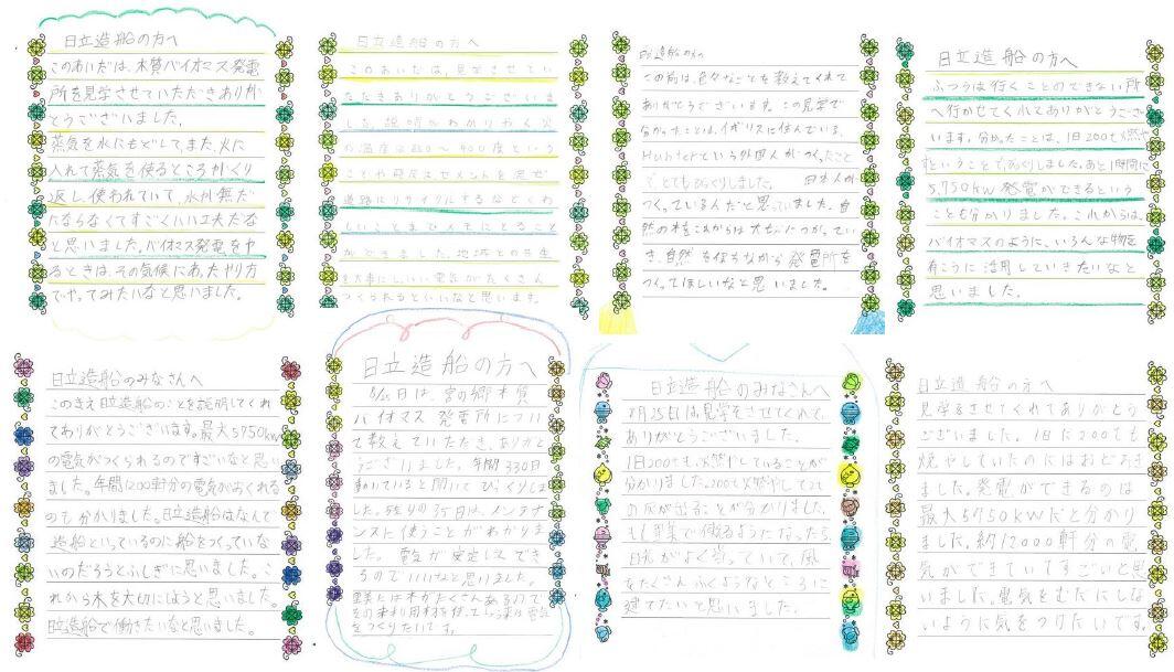 見学した里美小学校6年生の皆さんからいただいたお手紙