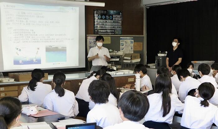 生徒さんからは、仕事で苦労したことややりがい、洋上風力発電の技術に関しての質問などがあり、大いに興味、関心を持っていただいたようでした。