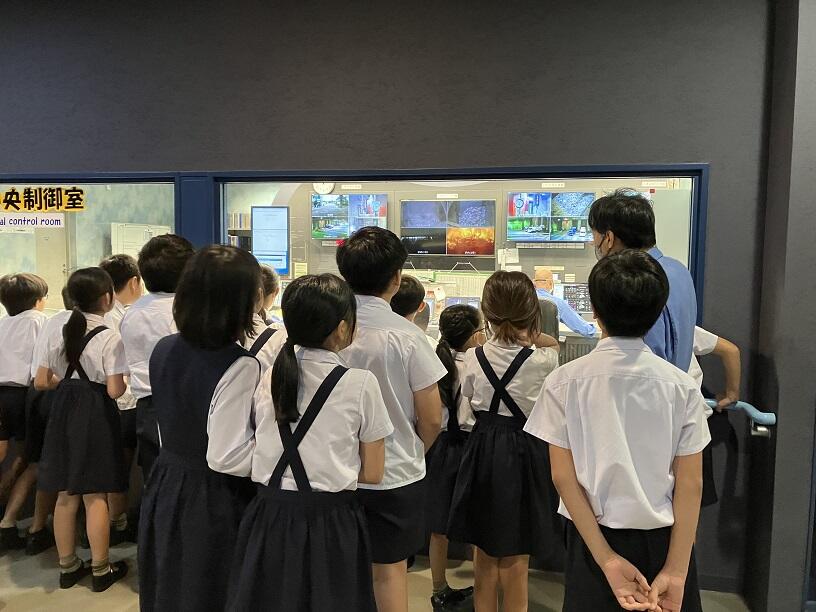 出前授業でごみ焼却発電施設の仕組みを学んでいただいた後、舞洲工場の見学を支援させていただき、さらに理解を深めていただきました。舞洲工場は、当社が製作に携わったごみ焼却発電施設です。