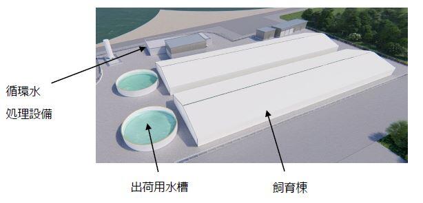 - 主な施設:飼育用水槽8基、出荷用水槽2基、循環水処理設備一式