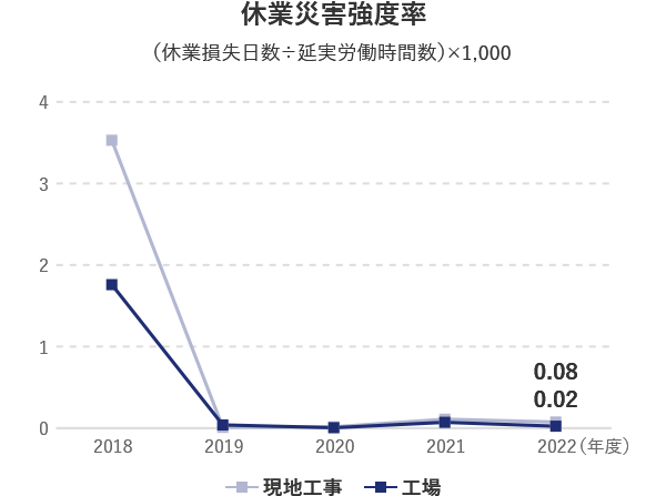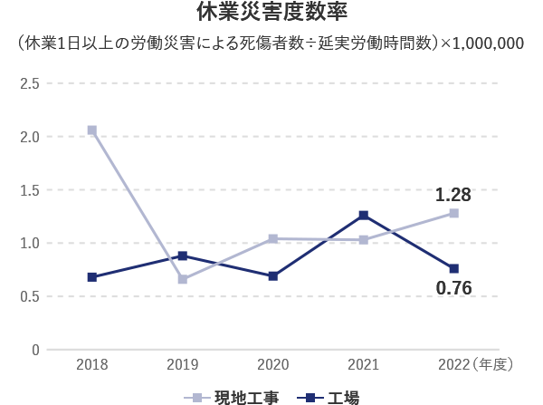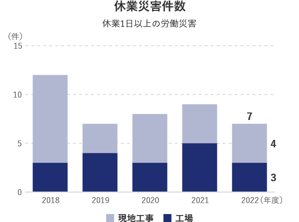 安全・安心は、人的資本経営、健康経営の基本です。今後も、製品の設計、製造、建設、そして運用に至る全ての過程において、安全を追い求める姿勢を持ち続け、当社グループの事業活動に関わる全ての人が、安全で快適に働ける環境づくりを進めていきます。